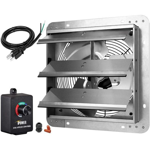 iPower HIFANXEXHAUST12CTB 12 Inch Variable Shutter Exhaust Fan with Speed Controller and Power Cord Kit, 1620RPM, 1600 CFM, Silver