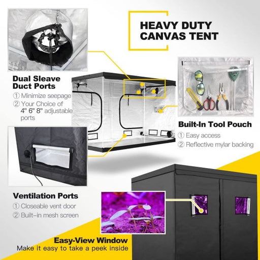 iPower 96"x48"x80" Hydroponic Water-Resistant Grow Tent with Removable Floor Tray for Indoor Seedling Plant Growing 4'x8'