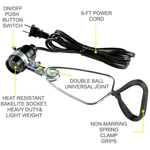 Simple Deluxe HIWKLTCLAMPSOCKETX6 6-Pack 18-2-Gauge Brooder and Heat Clamp Lamp with Bakelite Socket 150 Watt 6 Feet Cord