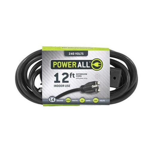 Power All 240 Volt 12 ft Extension Cord with 3 Outlet Power Strip - 14 Gauge