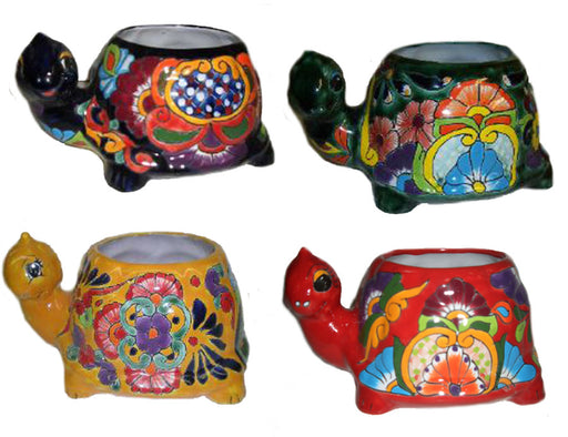 Talavera Turtle Planters-Blue Green Red Yellow, 10 in