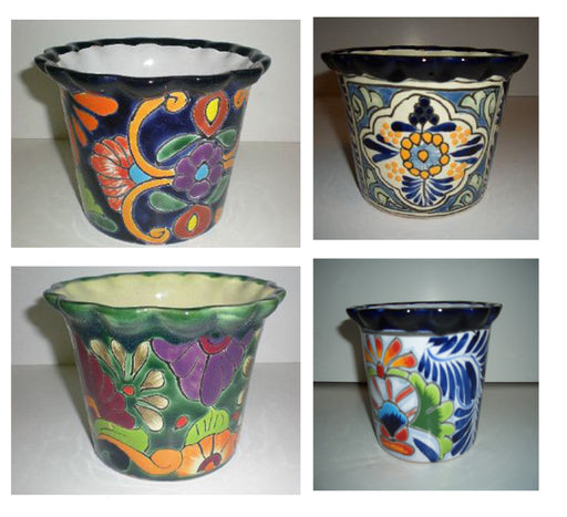 Talavera Violetera Pots-Traditional Laurel & Bicentenario, 5 in