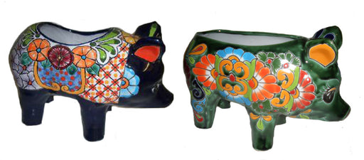 Talavera Pig Planters-Blue Green, 10 in