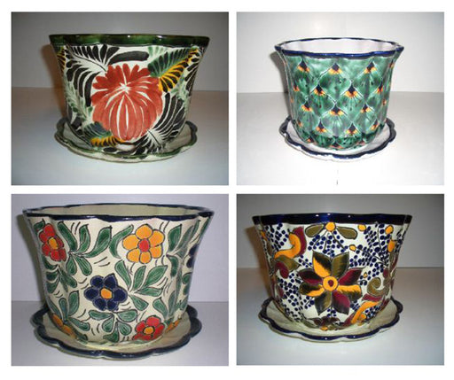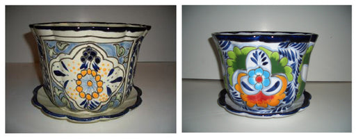 Talavera Pot with Saucer-Traditional, MD, 8 in