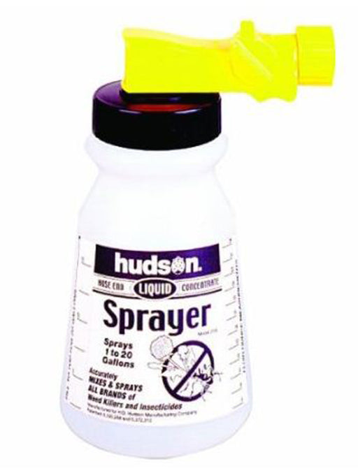 HudsonOriginal price $7.69 - Original price $7.69Original price$7.69$7.69 - $7.69Current price $7.69Hose end sprayer sprays most brands of liquid concentrates. Three settings - off, on, or water only. Sprays 1 to 20 gallons. 1 year warranty.