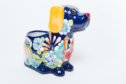 Talavera Chihuahuas Statue-Sitting, Blue/Green/Red/Yellow, 8 in