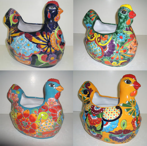 Talavera Chicken Planter-Blue Green Aqua Yellow, SM