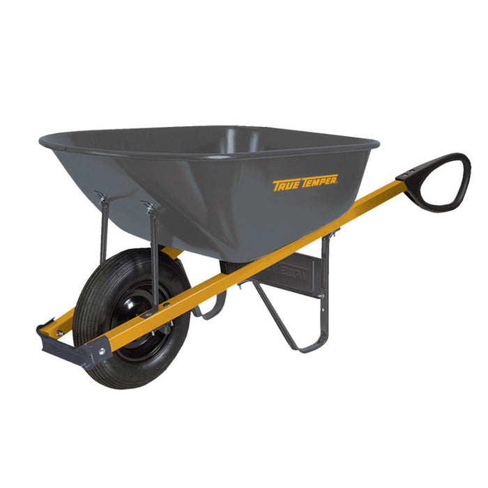 Ames True Temper Steel Tray Wheelbarrow with Total Control Handles-Black, 6Cuft