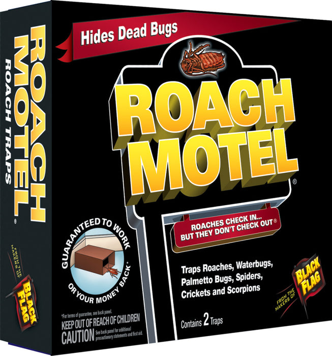 Black Flag Roach Motel provides a solution to roach infestations in your home and also traps waterbugs, palmetto bugs, spiders and scorpions continuously for up to four months. Hides dead bugs.