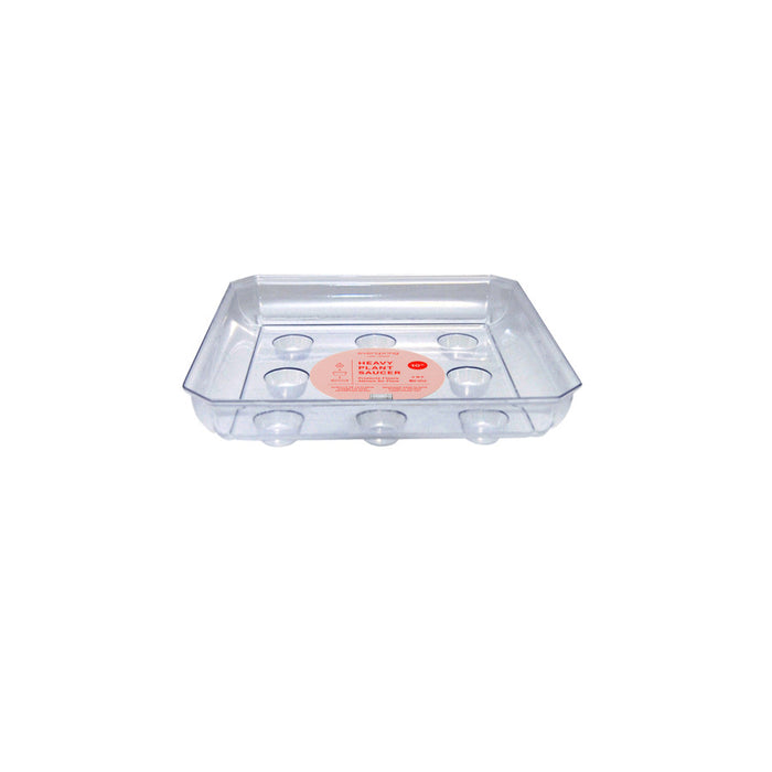 8" Square Heavy Gauge Carpet Saver Footed Saucer is the perfect plant saucer for indoor and outdoor use. Its heavy gauge construction and rounded feet allows air to flow underneath the saucer helping to prevent moisture build up while catching water overflow protecting floors, decks and furniture from water damage. The perfect saucer for square pots.