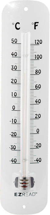 E-Z Read 12 inch white thermometer with heavy duty metal construction.