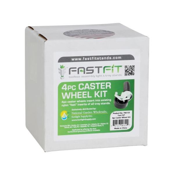 Fast Fit® Components: Castor wheels - 4 pc (706133 - can support up to 240 lbs) and 6 pc (706134 - can support up to 360 lbs). Light Stand 4 ft Uprights (706125). Extension Kit (706131). Light Stand Crossbar (706130). Sturdy hanging bar comes in 2 ft, 3 ft and 4 ft sizes (706126, 706127, 706128). Height Reduction Kits come in 4 pc (706116) or 6 pc set (706118) - reduces overall height from 25 inches to 11 inches. Replacement Leg (706139).