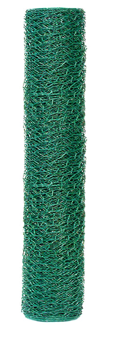 A 1 inch hex mesh green coated PVC wire. Also known as poultry netting, ideal for protecting garden and shrubs as well as used for crafts and pet enclosures. Economically sized rolls for easy use.