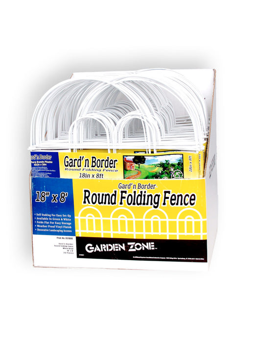 Garden Zone Gard'n Border Round Folding Fence-White, 18In X 8 ft