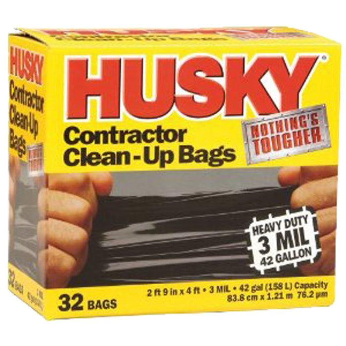42 gallon black contractor clean-up bags. Husky premium trash bags out perform all major brands.