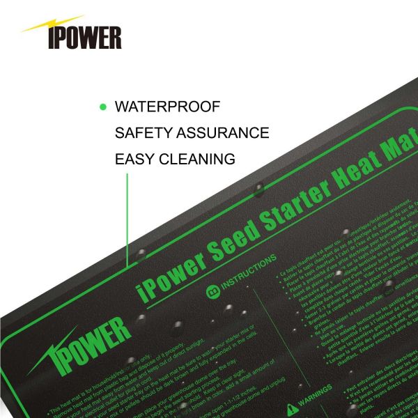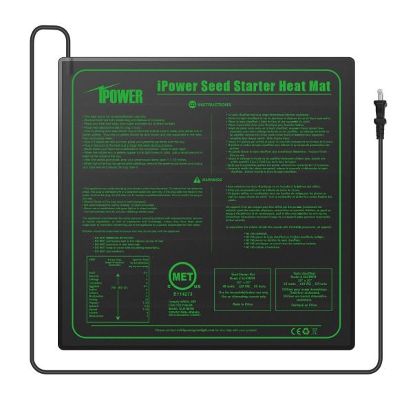 iPower Medium Seedling Heat Mat 20" x 20" Warm Hydroponic Heating Pad with Durable Waterproof Design The Seedling Heat Mat uses 17 watts to warm root area 10 to 20 degrees over ambient temperature and improve seed germination and increases the success of seedlings and cuttings. Waterproof construction with six foot power cord. Provides constant optimal temperatures Easy Plug-In Operation with LED Illuminated Indicator Lights & Three-Prong Ground Plug Waterproof, durable construction, and easy cleaning Protect your safety with isolated strong wires and ETL certificate Mat Certified with MET(Tracking No.E114273) and Controller certified by ETL DETAILS & SPECIFICATIONS Internal insulated wiring for enhanced safety. Heavy duty multi-layer construction Warms root area 10-20 degree fahrenheit over ambient temperature to improve germination. Provides constant temperature to improve vegetable, plant, herb, and flower seed germination Perfect for seeding, germination, homebrewing, and pet enclosures terrariums, such as those used in reptile, rodent and arachnid Dimensions: 20"x 20"; Watt: 17.5W; Length of Power Cord:5.90ft 1 Year Manufacturer Warranty SPECIFICATIONS ADJUSTABLE REFLECTOR WHY OUR CUSTOMERS KEEP SHOPPING WITH US SECURE & HASSLE FREE SHOPPING All items are covered by manufacturer warranty FAST SHIPPING Most orders ship within 1 business day. Customer also can choose one-day or expedited shipping. CUSTOMER SERVICE Please call us at (626)863-7344 We are located at 2399 Bateman Ave, Irwindale, CA 91010 CUSTOMER SATISFACTION GUARANTEED Zenhydro commitment to 100% customer satisfaction is backed by a 30-Day Money Back Guarantee for New items and a 60-Day Money Back Guarantee for Recon! WARRANTY 1 Year Manufacturer Warranty. * Warranty valid for US customers only INTERNATIONAL ORDERS Orders outside the US are not protected by manufacturer warranty. (All orders are still covered by HPS Grow Lights' 30-day Money Back Guarantee) Shipping and customs charges for non-US orders will be calculated when the item is added to cart