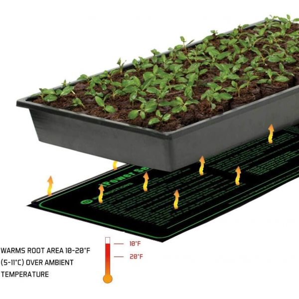 • Warms root area 10-20 degree fahrenheit over ambient temperature to improve germination. Provides constant temperature to improve vegetable, plant, herb, and flower seed germination