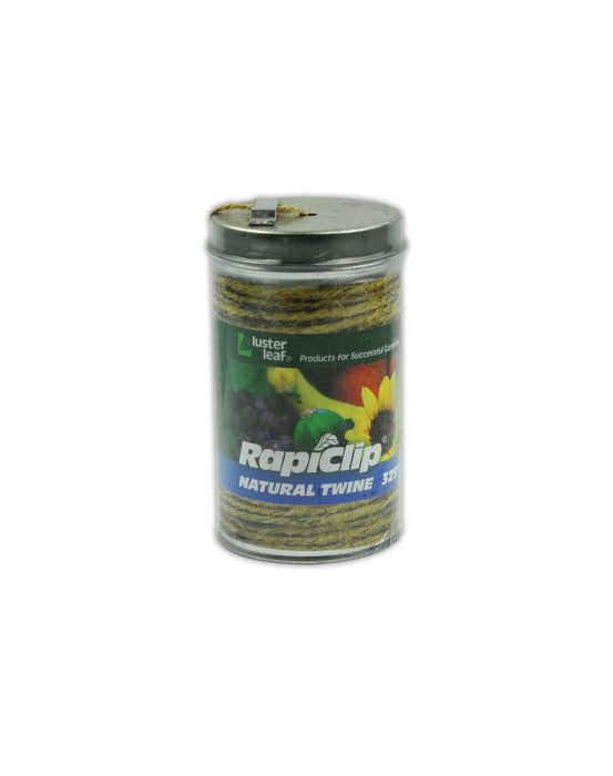 Rapiclip Natural Twine contains 325 feet of three (3) ply jute, with a tensile strength of 37.8 pounds. The dispenser can includes a cutter on its top to easily cut the twine to the length required.