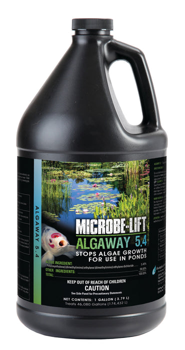 Microbe-Lift Algaway 5.4 EPA Registered Algae Control. Eliminates many types of algae in the pond. For use with fish and live plants. Liquid formulation. EPA registered.