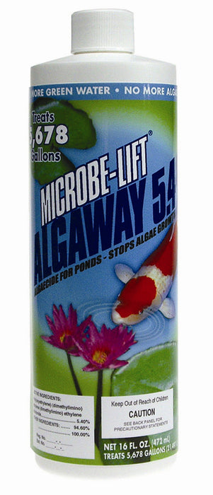 Microbe-Lift Algaway 5.4 EPA Registered Algae Control. Eliminates many types of algae in the pond. For use with fish and live plants. Liquid formulation. EPA registered.