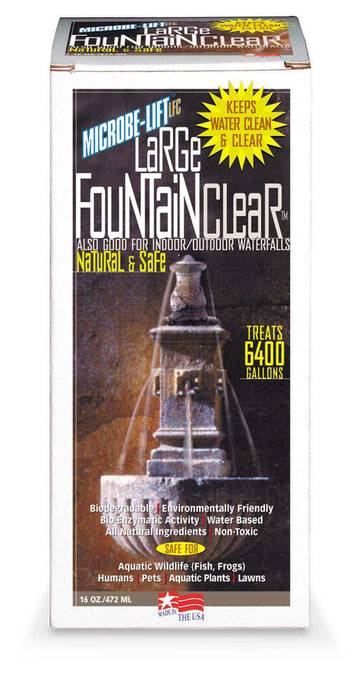 Specially Formulated for Larger Water Fountains & for Indoor/Outdoor Waterfalls. This product uses two unique, proprietary technologies to prevent organic contaminants from forming (i.e.: crusty white scale deposits, iron, copper, hard water stains): one technology helps prevent the buildup of stains and mineral deposits on the birdbath or fountain surface; the second uses bio-enzymatic activity to keep water clear and free from the organic debris that can make the water cloudy. Will help to ensure clear, sparkling water that keeps water filters and pumps free from organic debris. Safe for birds, fish, aquatic wildlife (fish, frogs), humans, pets, aquatic plants and lawns. All natural ingredients. Biodegradable and nontoxic.