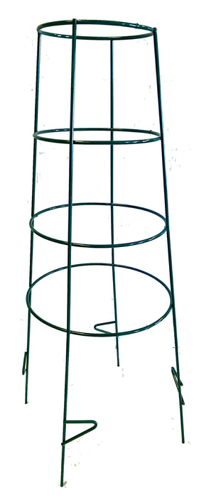 Heavy Duty Tomato Cage is made from galvanized steel. At 52 inches tall, this product can be used for tomatoes, peppers and other vining plants and vegetables. It also has a top opening of 10 inches with 4 Rings and 4 Legs. Powder coated in green to add flair in the garden. This product provides both functionality and style. Also remember this product is proudly made in the USA in Rockford, IL and our label shows that as well. American products for American people.