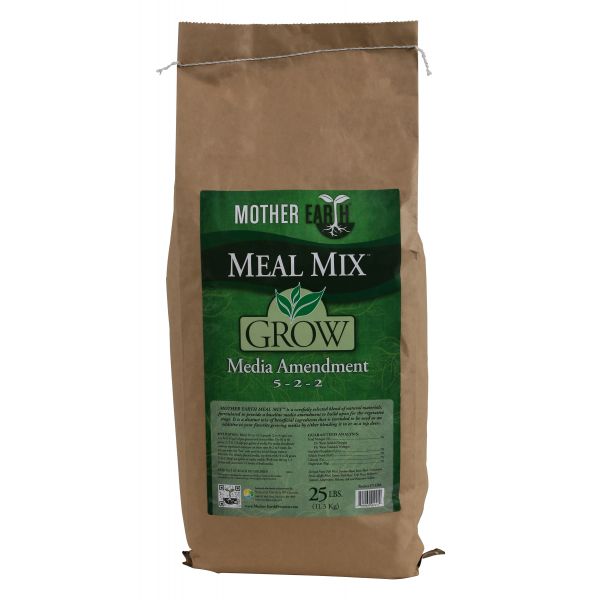 Mother Earth Meal Mix® is a carefully selected blend of natural materials, formulated to provide a baseline media/soil amendment to build upon for the vegetative stage. It is a distinct mix of beneficial ingredients that is intended to be used as an additive to your favorite growing media (coco, soilless, raised beds and native soils) by either blending in, top dressing or making teas. Use for robust lush vegetative growth with compact internode spacing and building vigorous root systems. Derived from: Fish meal, feather meal, bone meal, crustacean meal, alfalfa meal, cotton seed meal, kelp meal, dolomite, gypsum, langbeinite, volcanic ash and potassium sulfate.
