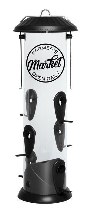 Bring a decorative rustic feel to your birding experience with this decorative Easy Clean tube feeder! Spend less time refilling your feeder and more time enjoying the birds with this large 2.8 quart capacity tube feeder. This feeder can be used for sunflower and mixed seed blends, or can also be converted to a thistle feeder with the thistle inserts, allowing you to attract an even wider variety of birds with a single feeder. This feeder's innovative design allows the base and feed ports to be removed for a more thorough cleaning without the use of tools to help you keep your backyard flock healthy.