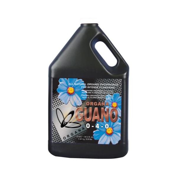 Organa-Guano is a natural organic flowering stimulant derived from fruit eating bats. Organa-Guano functions as a flowering catalyst containing all necessary organic activators. The completely solubilized liquid contains the highest rate of phosphorus without the addition of synthetics. The use of a liquid guano is three times more cost effective and concentrated as compared to powder. The organic liquid form of phosphorus is easily absorbed, stimulates early flowering, contains beneficial enzymes, increases number of branches/flower sites, enhances aroma and improves taste. The formula is non burning and contains no odor or harmful residue. Organa-Guano is user friendly and any grower can achieve exceptional results.