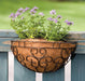 Cameo wall or deck planter with coco liner which keeps soil tidy. Powder-coated for added durability