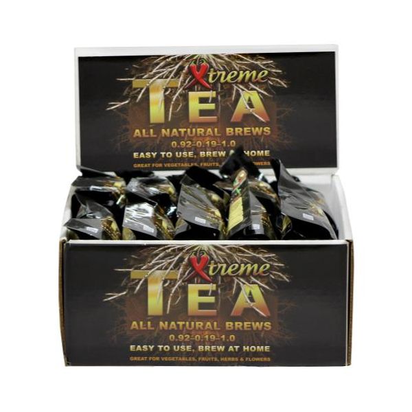 Xtreme Tea Brews are a blend of the highest-quality organic matter teaming with active soil microbes, such as bacteria and symbiotic fungi. The treasure trove of beneficial organisms in Tea Brews are poured around the base of your plant, where they begin rapidly breaking down nutrients into plant available forms. With more nutrients and minerals available, your plants reach new peak rates of growth. The living microbes help shield plants from disease and stress. Tea Brews are a beneficial additive and may be used with any nutrient line. Now in one use packages. Attractive display box contains 20 x 90 gram pouches.