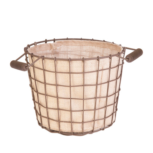Panacea Small Rustic Woven Wire Bushel Basket with Burlap Liner-Rust, 8In