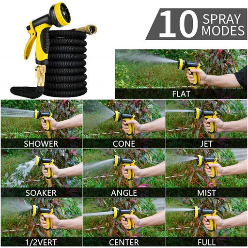 50' Expandable Garden Water Hose with High Pressure Spray Nozzle, 3/4 Inch Brass Connectors, iPower