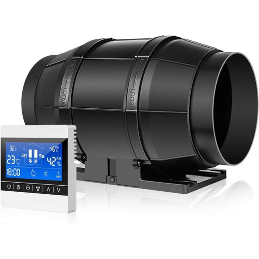 iPower 6 Inch 324 CFM Inline Duct Fan with Speed Humidity Temperature Controller for Grow Tent Ventilation, 6", Black