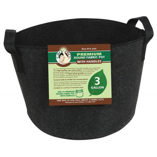 Gro Pro Premium Round Fabric Pot w- Handles 3 Gallon - Black