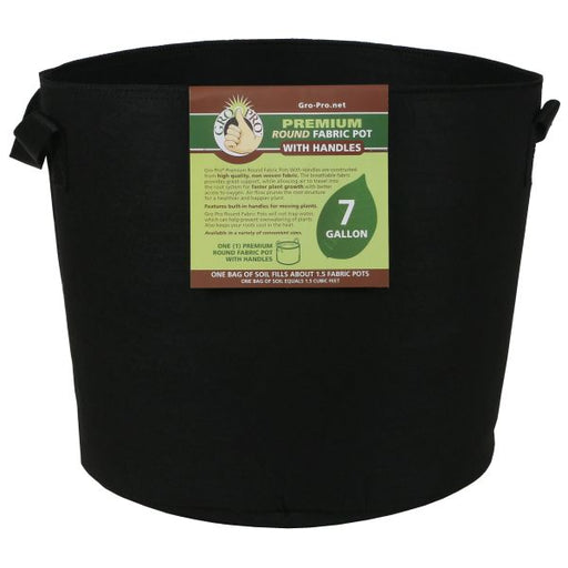 Gro Pro Premium Round Fabric Pot w- Handles 7 Gallon - Black