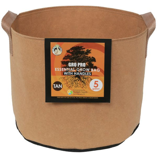 Gro Pro Essential Round Fabric Pot w- Handles 5 Gallon - Tan