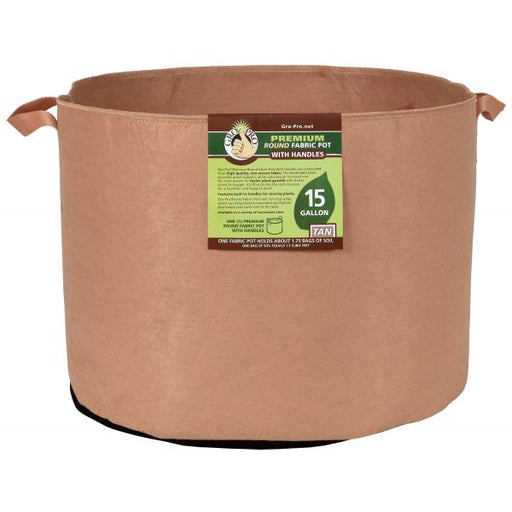 Gro Pro Premium Round Fabric Pot w- Handles 15 Gallon - Tan