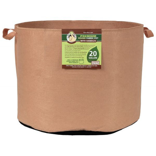 Gro Pro Premium Round Fabric Pot w- Handles 20 Gallon - Tan