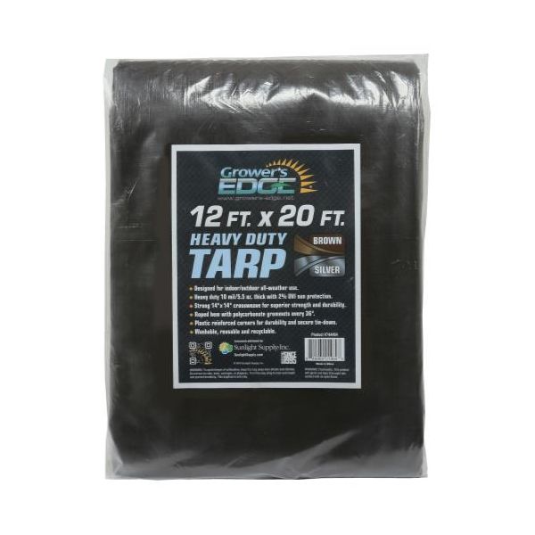 Grower's Edge Heavy Duty Tarps are designed for indoor/outdoor all-weather use. Heavy duty 10 mil/5.5 oz. thickness. The Grower's Edge Tarps feature a 2% UVI sun protection treatment and strong 14 x 14 inch cross weaves for superior strength and durability. These tarps come with brown color on the top and silver on the back. Roped hem and polycarbonate grommets at 3 ft intervals all around the outside edges with plastic reinforced corners for easy tie-down. Every tarp is washable, reusable and recyclable.