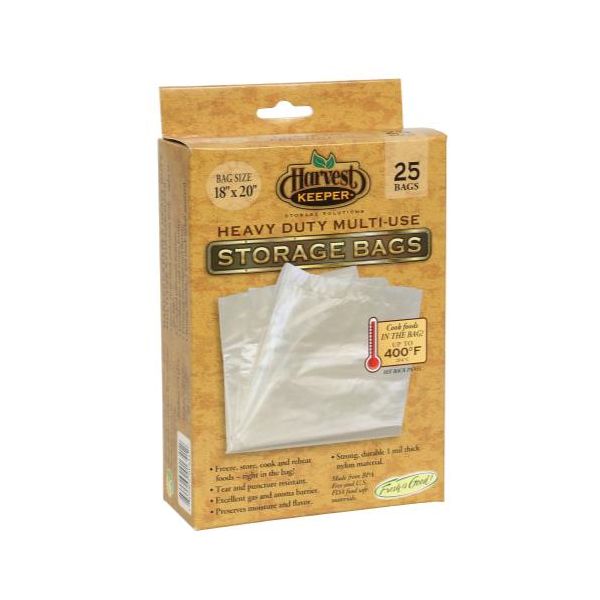 Harvest Keeper Heavy Duty Multi-Use Storage Bags are the thickest and most durable bags on the market today. With a 1 mil thickness, these bags are puncture free, provide a strong odor barrier and will preserve your favorite foods natural flavors and color. The storage bags measure 18 in x 20 in and are manufactured for multiple uses. These bags can handle the heat which makes them great for use with ovens, microwaves, pans and slow cookers up to 400*F. They can also be used in refrigerators and freezers. Proudly made in the USA.