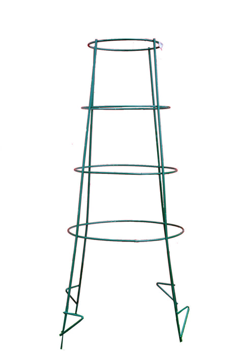 Extra Heavy Duty Tomato Cage is made from galvanized steel. At 44 inches tall, this product can be used for tomatoes, peppers and other vining plants and vegetables. It also has a top opening of 10 inches with 4 Rings and 4 Legs. Powder coated in green to add flair in the garden. This product provides both functionality and style. Also remember this product is proudly made in the USA in Rockford, IL and our label shows that as well. American products for American people.