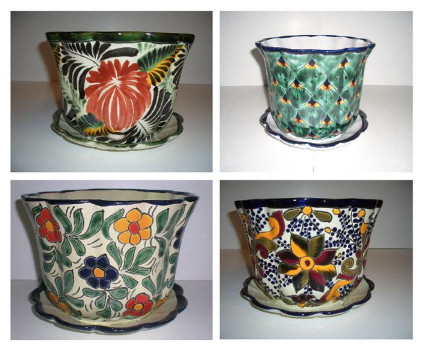 Talavera Pot with Saucer-Florentino Peacock Primavera/Violeta, SM, 6 in
