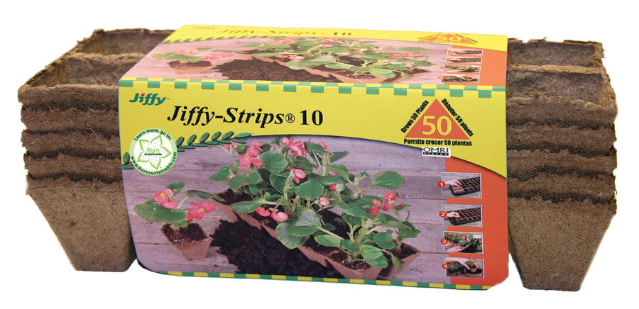 Jiffy-Strips 10, 5 strips (50 pots). Genuine Jiffy strips contain 100% Canadian Sphagnum peat.