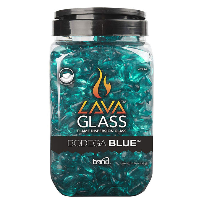 Bond Mini Bodega Blue LavaGlass adds a touch of brilliance in your fire pit or fireplace, use Bond LavaGlass to create an eye-catching display! Brightly colored and reflective, these glass beads complement and enhance the light of dancing flames. These heat and weather resistant beads are made especially for use in fire pits and fireplaces. A beautiful alternative to boring wood and coal fillers, these beads add sparkling character and style to any indoor or outdoor gas fireplace. Use only one of the gorgeous colors for a uniform approach to the space or mix and match colors for an exotic touch.